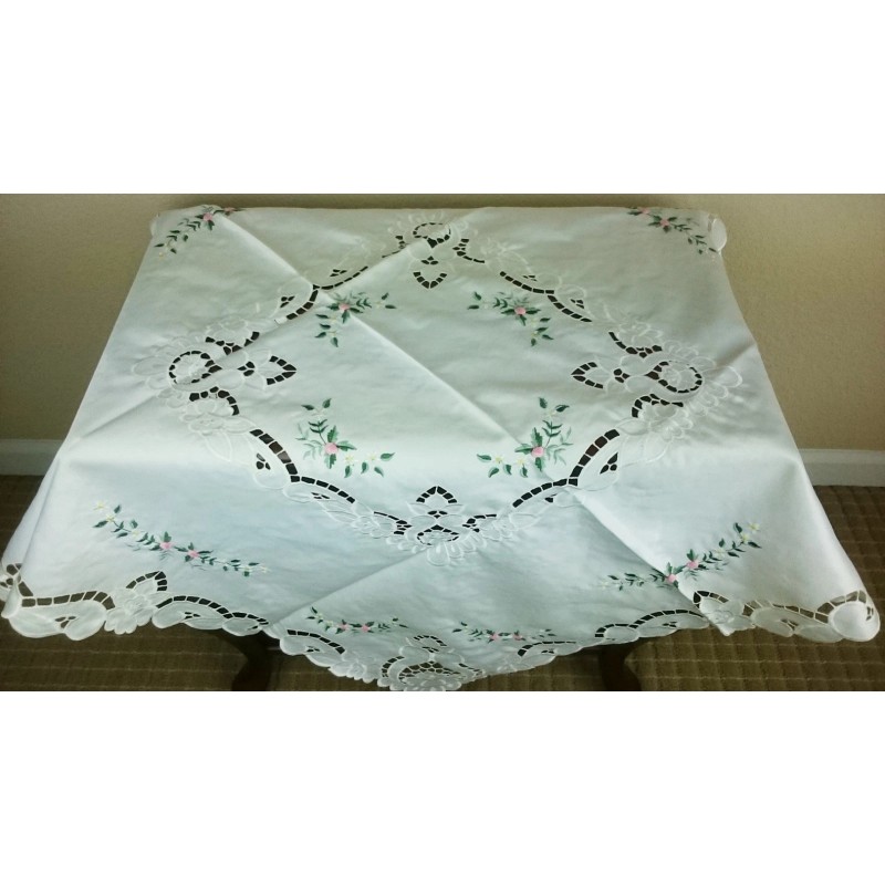 Beautiful embroidered cut work flower fabric tablecloth.