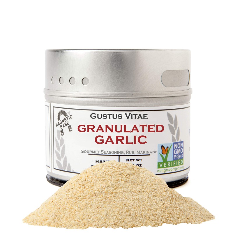 Granulated Garlic - Non GMO Project Verified - Hand-Packed In Magnetic Tins - Sustainably Sourced - Grown in USA - All Natural - Not Irradiated - Crafted By Gustus Vitae - 2.2 Oz Net Weight
