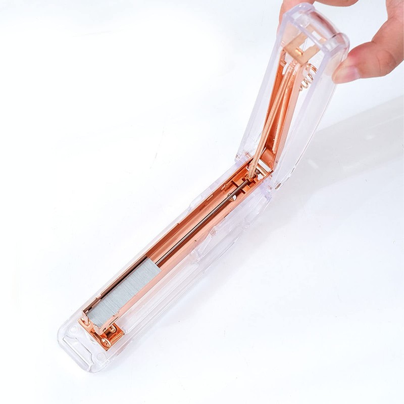 Grapadora de Oficina, Grapadora de Escritorio de Mano de Metal para Oficina de Escritorio en Casa (Oro rosa)