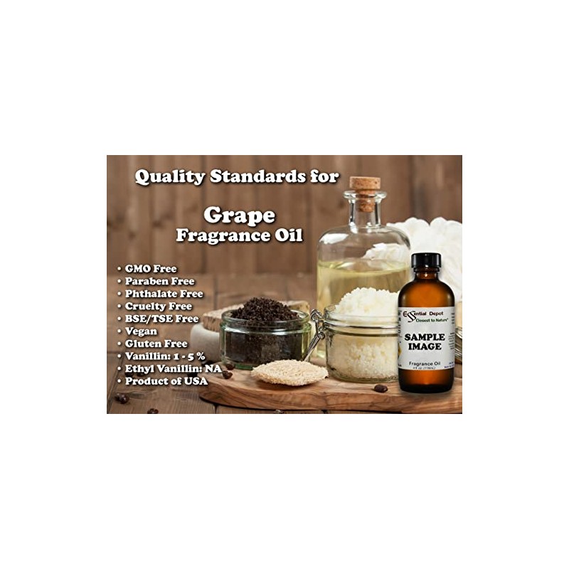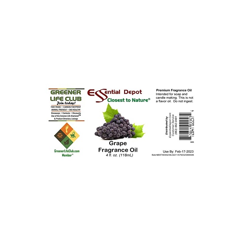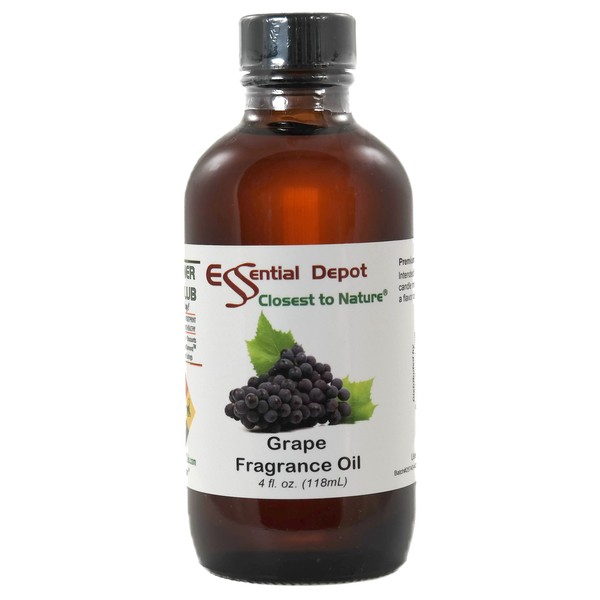 - GRAPE FRAGRANCE OIL, VOLUME: 4 fl oz, COUNTRY OF ORIGIN: USA, COLOR: Clear to yellow liquid, CONSISTENCY: thin.
