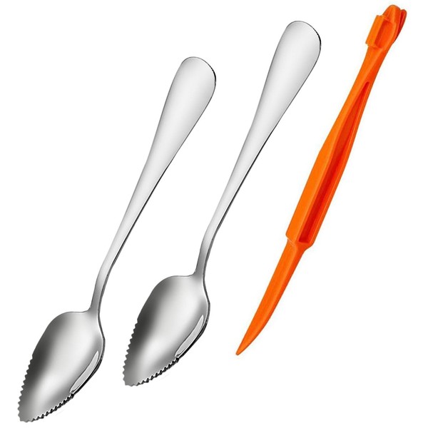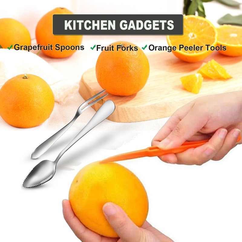 • Grapefruit Spoon Serrated Edge Stainless Steel Fruit Knife Grapefruit Utensils Tool Dessert Spoon with Orange Peeler Tool for Citrus Lemon Kiwi Salads