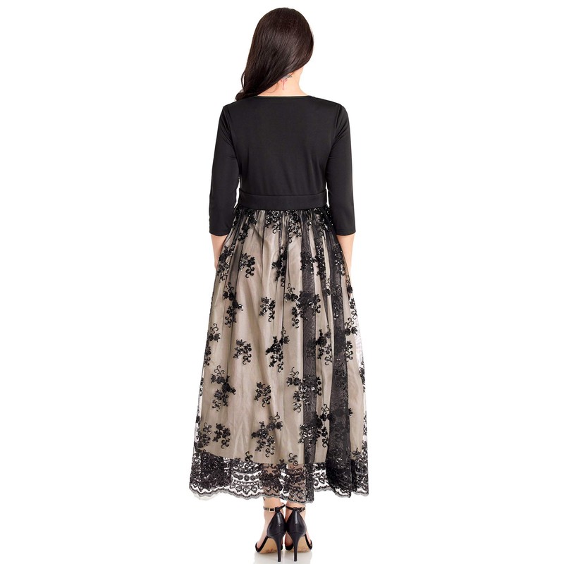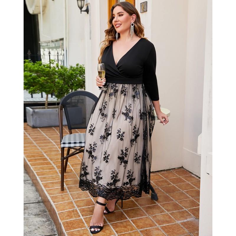 GRAPENT Women's Plus Size Sequin 3/4 Sleeves Evening Gown Party Long Maxi Dress Champagne Black Size 20W