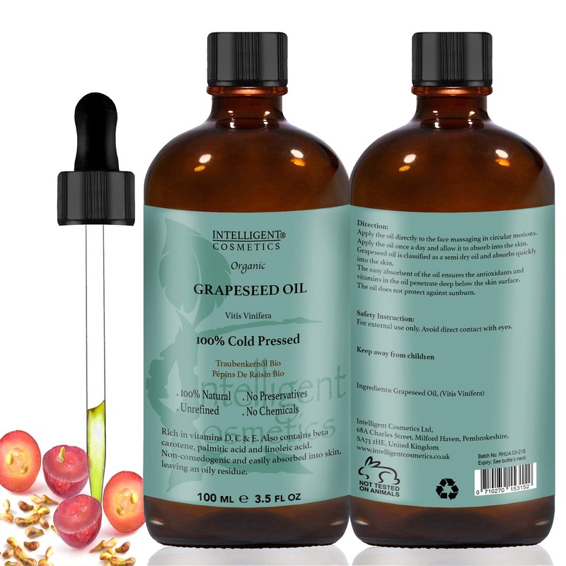 Acne and Pimples: Grapeseed oil contains linoleic acid that strengthens the cell membranes and improves the overall quality of your skin.