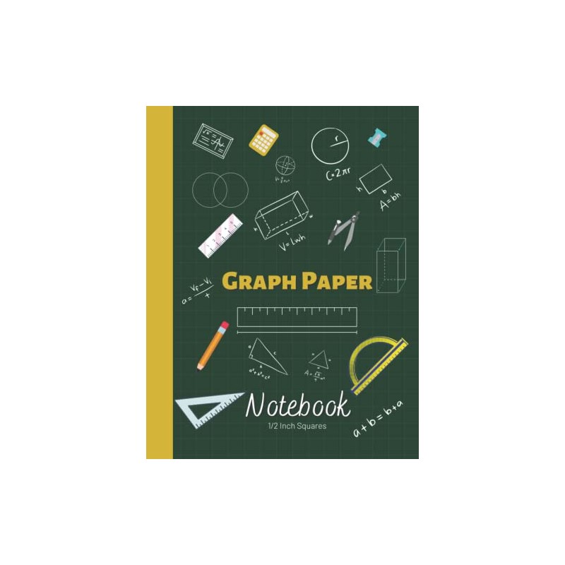 Graph Paper Notebook – 1/2 Inch Squares, 100 Pages (90 GSM), Non-Perforated, Thick Lines : Blank Quad Ruled, 1/2 Inch Squares Graph paper, 1/2 Inch Squares – 8.5” X 11”