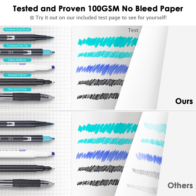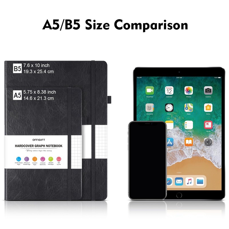- 【Thick Paper for Writing Without Limits】Large A5 hardcover notebook (5.75"x 8.38"/145mm x 215mm), total 320 pages, includes 312 numbered pages(equal to 156 sheets). 5 x 5mm graph grid paper(5 squares per inch). Our INNOVATIVE PAPER TECHNOLOGY on 100GSM thick paper ensures a perfect canvas for your ideas - no bleed, no ghosting, as confirmed by tests with various pens.