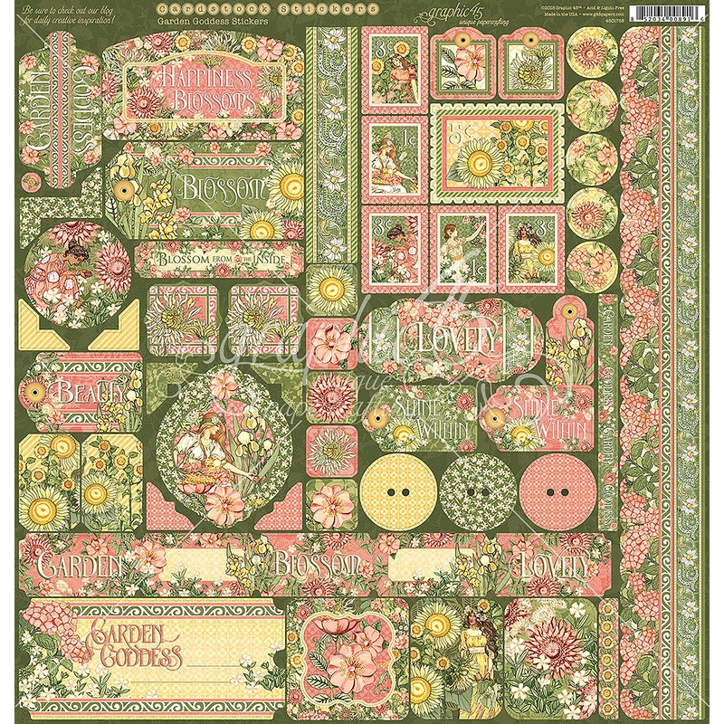 Graphic 45 G4501758 Garden Goddess Cardstock Stickers 12"X12", Multi