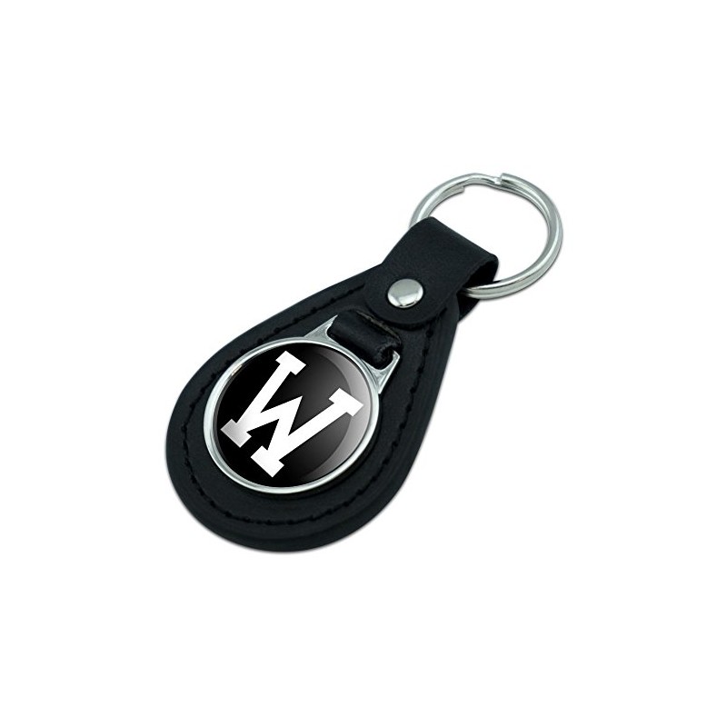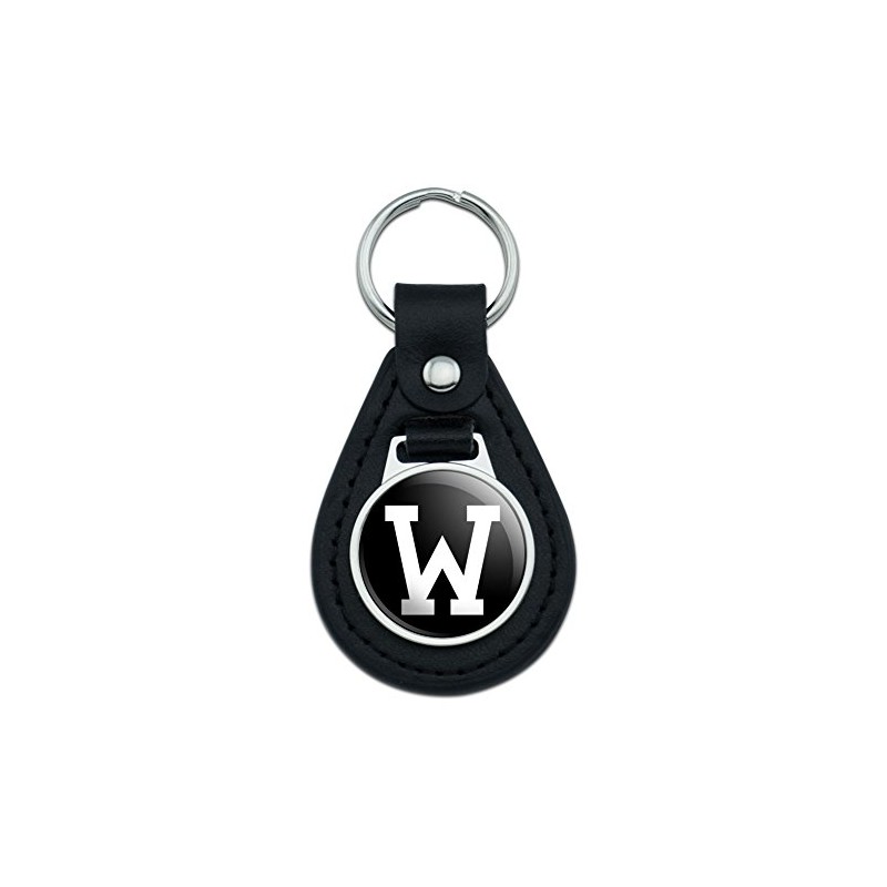 Graphics and More Letter W Initial Black White Black Leather Keychain