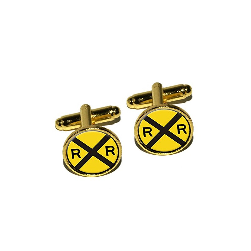 Graphics and More Railroad Crossing Traffic Sign - Train Round Cufflink Set - Gold