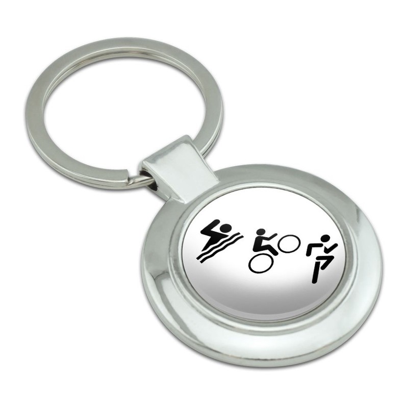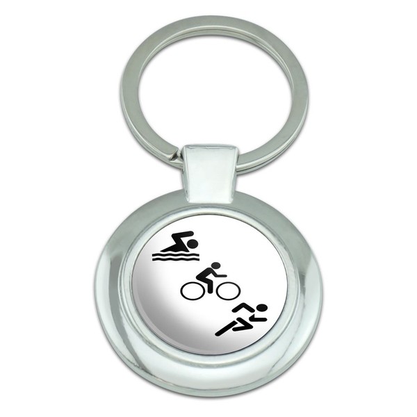 Graphics and More Triathlete Swim Bike Run Triathlon Classy Round Chrome Plated Metal Keychain