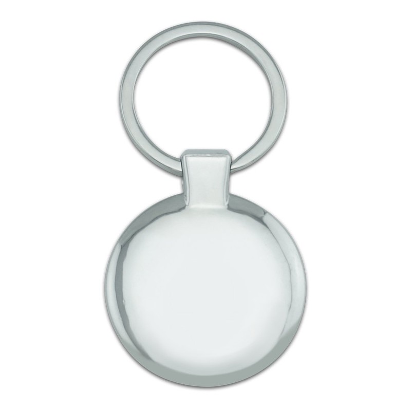 This sturdy round keychain is the perfect keeper for your collection of keys. The chrome plated metal has a solid, quality feel to it. The design shown is coated in resin to protect it from wear.