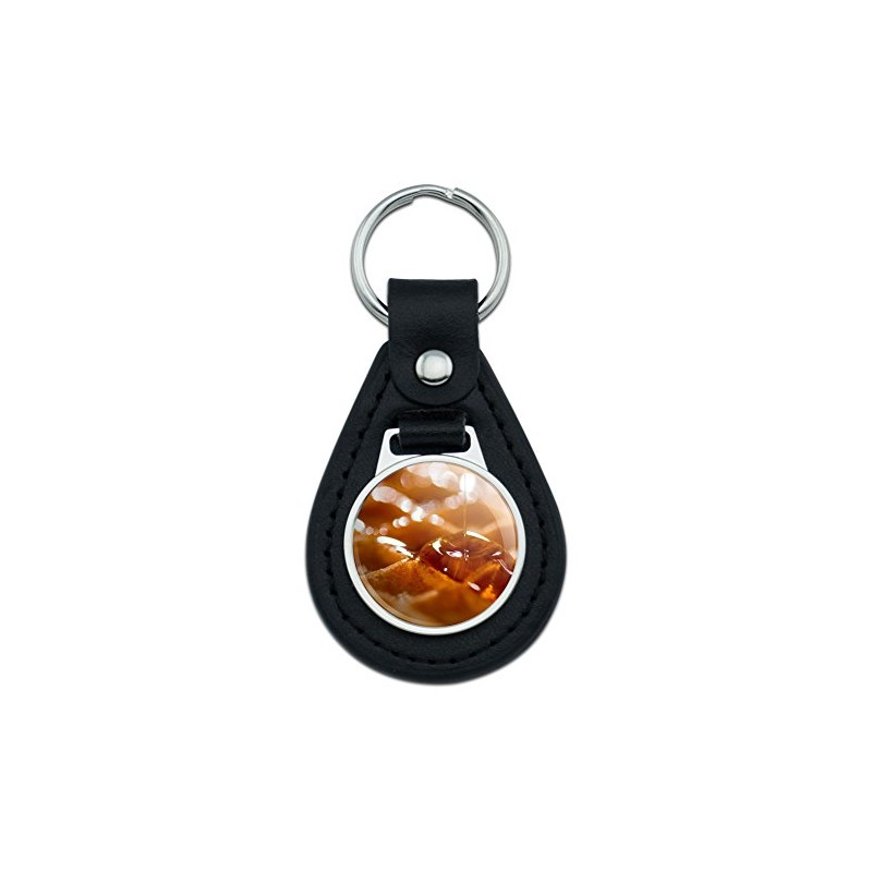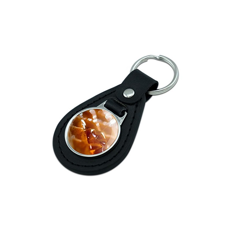 - This cute leather-and-metal key fob features the design shown encased in resin mounted on a nice black leather backing