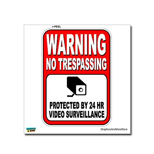Graphics and More Warning Protected by 24 Hour Video Surveillance No Trespassing Business Sign - Window Wall Sticker