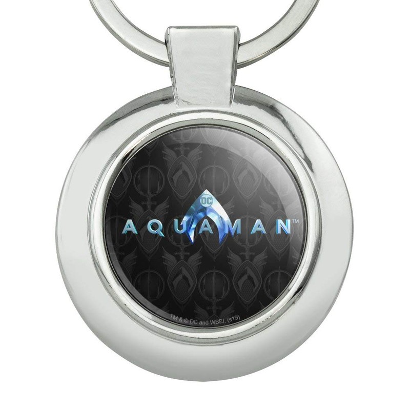 GRAPHICS & MORE Aquaman Movie Logo Keychain Classy Round Chrome Plated Metal