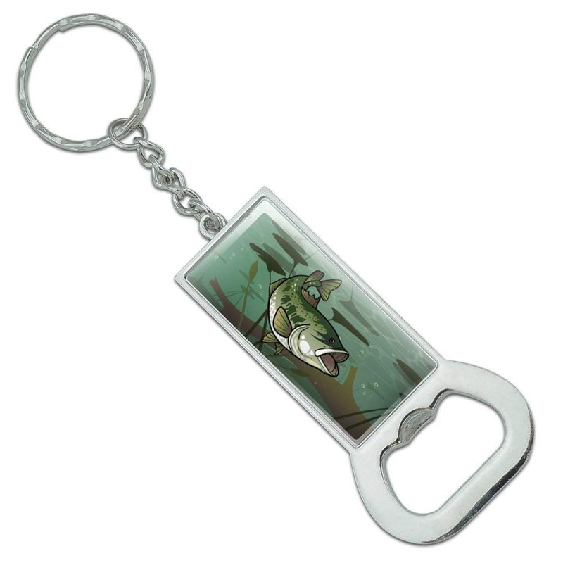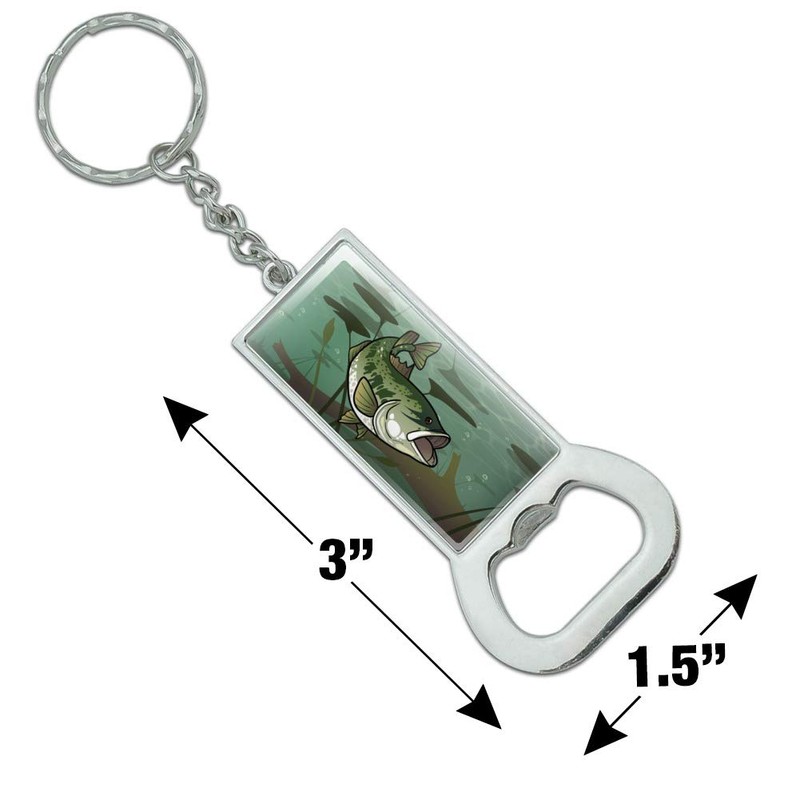 GRAPHICS & MORE Bass Fish Swimming in River Keychain Rectangle Chrome Plated Metal Bottle Cap Opener