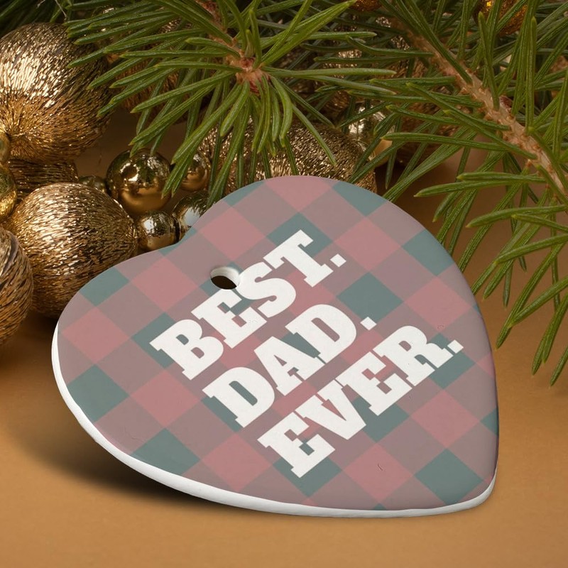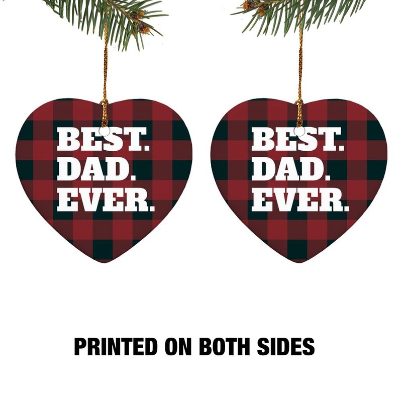 GRAPHICS & MORE Best Dad Ever Red Black Plaid Heart-Shaped Porcelain Holiday Christmas Tree Ornament - 2.8"