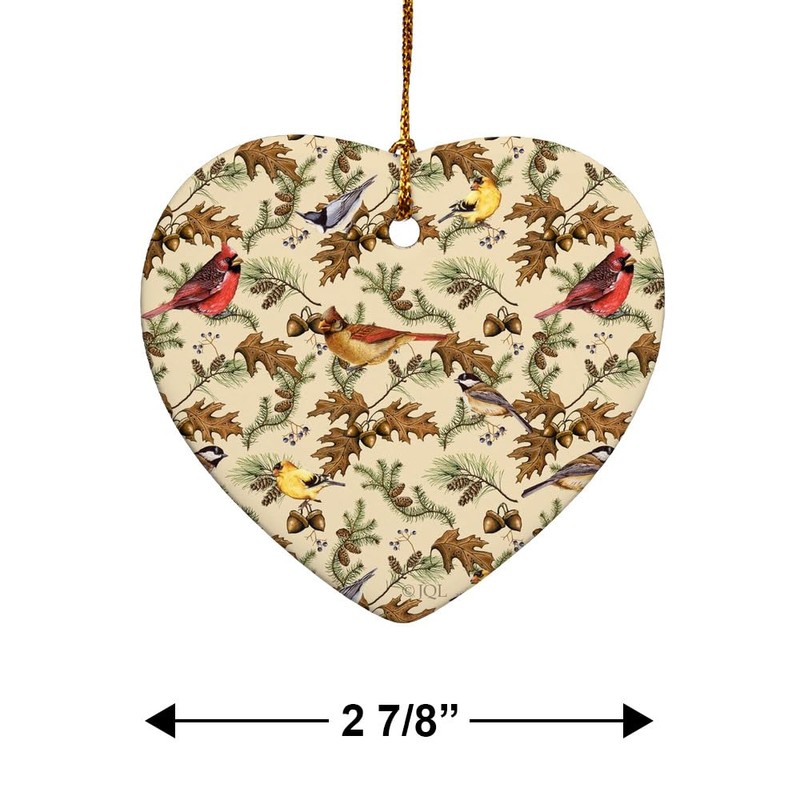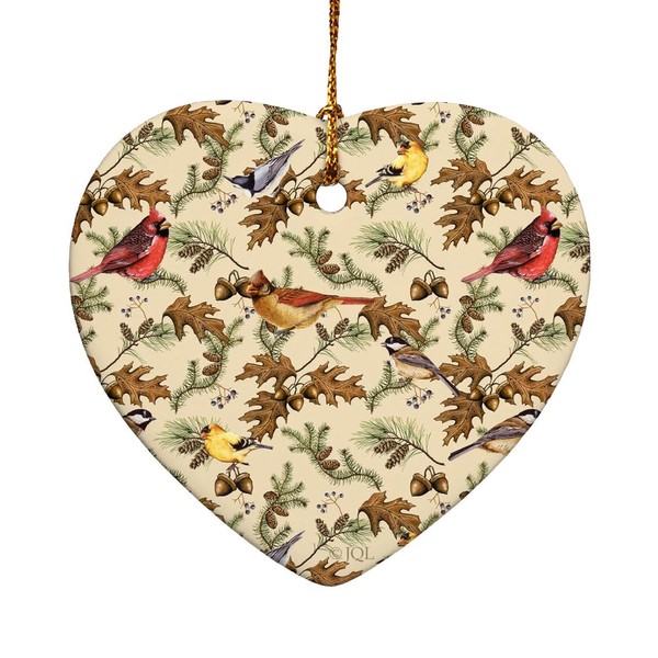 GRAPHICS & MORE Birds Songbirds Oak Leaves Acorns Pinecones Autumn Fall Heart-Shaped Porcelain Holiday Christmas Tree Ornament - 2.8"