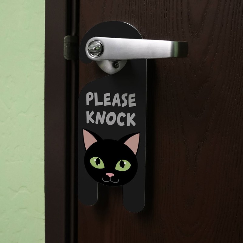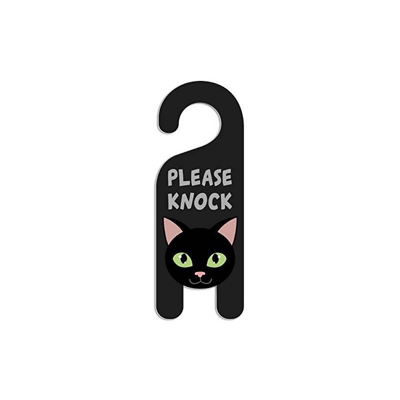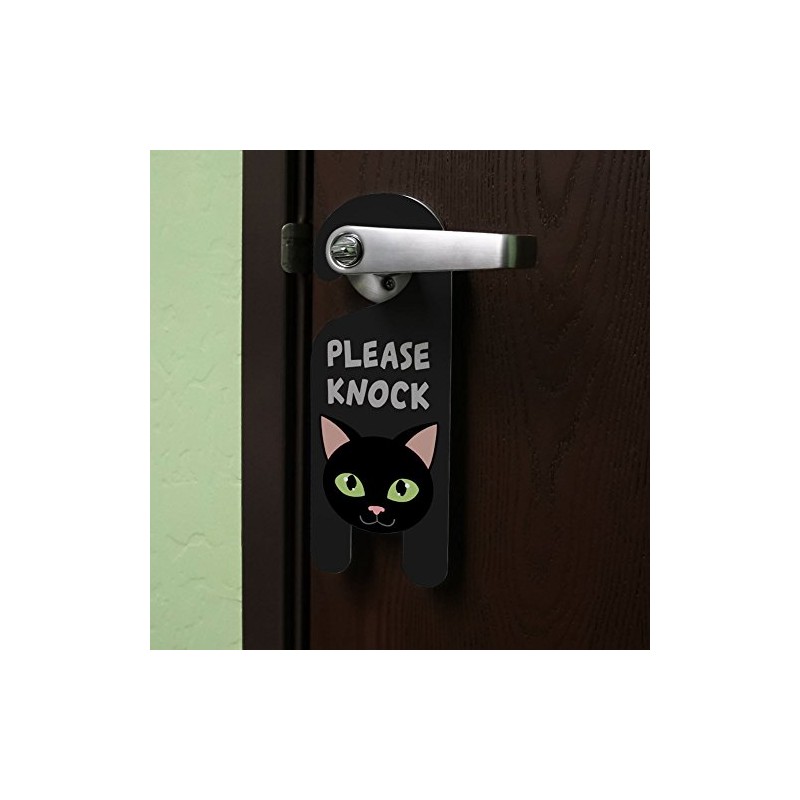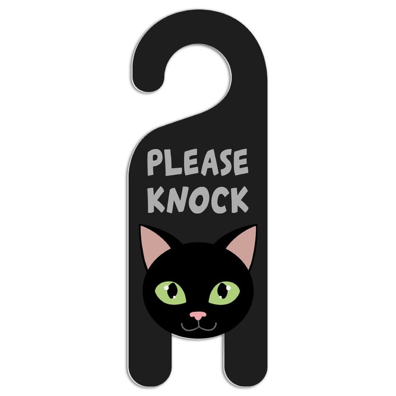 GRAPHICS & MORE Black Cat Do Not Disturb Plastic Door Knob Hanger Sign - Please Knock