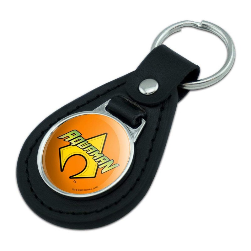 GRAPHICS & MORE Black Leather Aquaman Logo Keychain