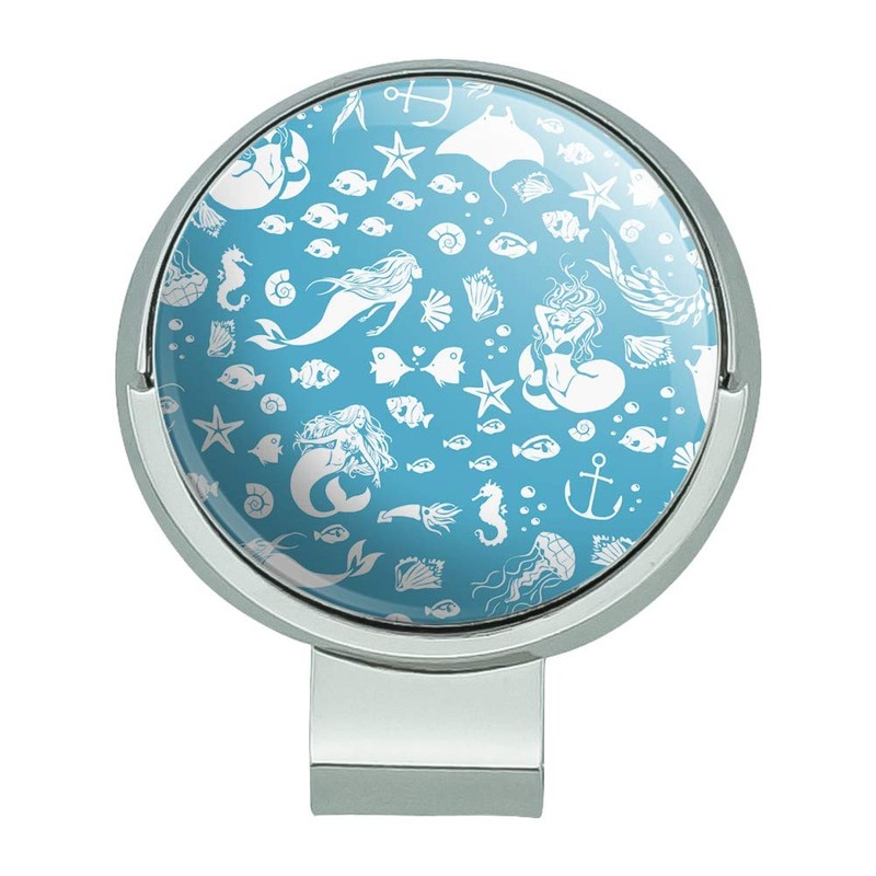 GRAPHICS & MORE Blue Mermaid Pattern with Seashells Fish Manta Rays Ocean Golf Hat Clip with Magnetic Ball Marker