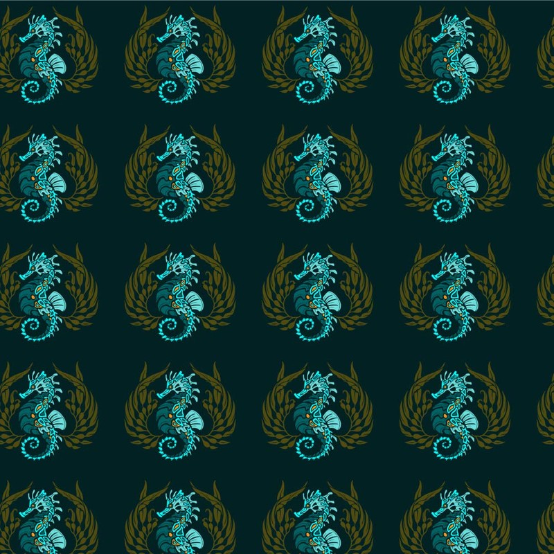 This elegant seahorse and kelp design evokes the beauty of ocean life.