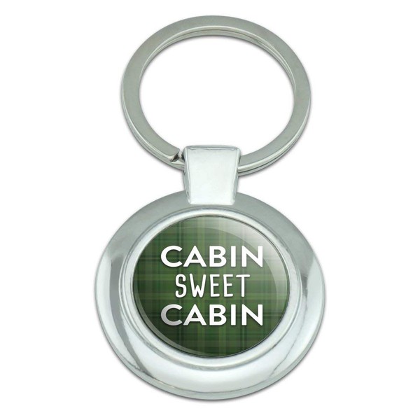 GRAPHICS & MORE Cabin Sweet Cabin Green Plaid Keychain Classy Round Chrome Plated Metal