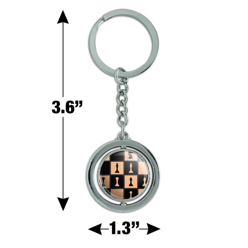 GRAPHICS & MORE Chess Board Pieces Pattern Keychain Spinning Round Chrome Plated Metal