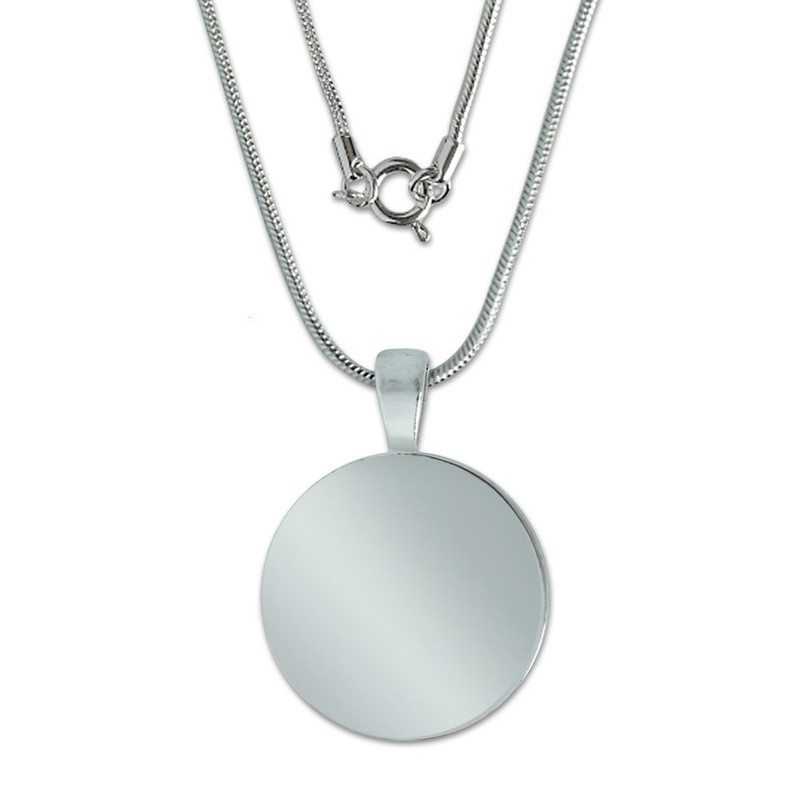 This charming pendant will spruce up any outfit and become your go to favorite accessory! The pendant is sterling silver plated and approximately 0.75" (1.9cm) in diameter with the delightful resin-topped design as shown. The included snake chain is 22" (55.9cm) in length, made from brass and 95.5% sterling silver plated, and closes with a spring ring clasp.