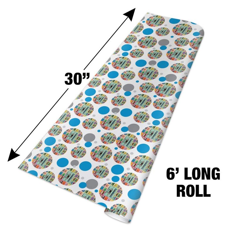 • Printed on a 30" (76cm) x 72" (183cm) roll of bright white, heavyweight wrapping paper, each of our many available designs is vibrant, eye-catching, and certain to build anticipation.