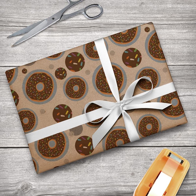 GRAPHICS & MORE Cute Donut with Sprinkles Chocolate Icing Premium Kraft Gift Wrap Wrapping Paper Roll