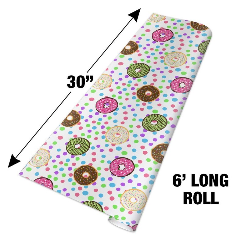 **About The Product:** They say you shouldn't judge a book by its cover, but you'll be more than happy to have your presents judged by theirs with Graphics and More's artful wrapping paper offerings. Printed on a 30" (76cm) x 72" (183cm) roll of bright white, heavyweight wrapping paper, each of our many available designs is vibrant, eye-catching, and certain to build anticipation. Whether you're looking to dress up a one-of-a-kind gift for that special individual, or need a few different designs to differentiate between several giftees, Graphics and More has the wrapping paper supplies to suit all of your gifting needs. **About The Design:** These fun donuts are almost good enough to eat!