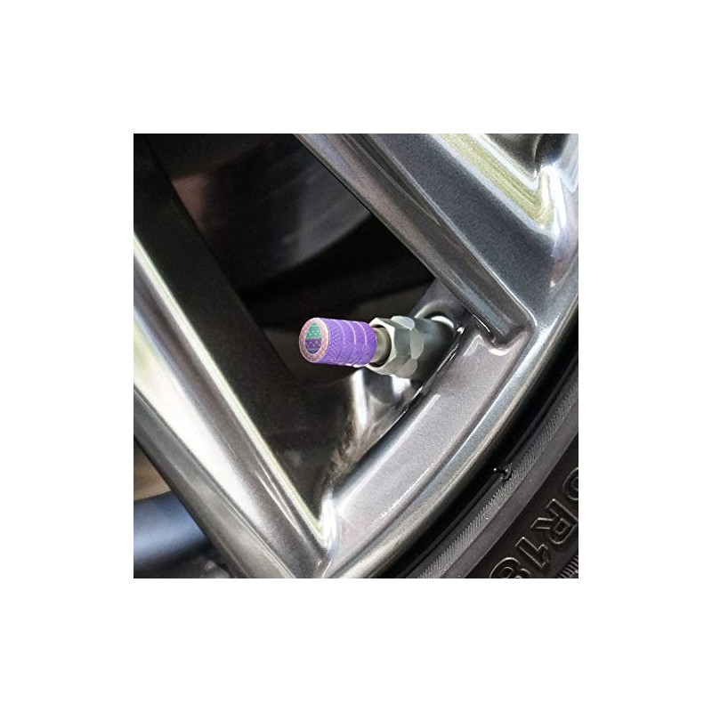 - VALVE STEM CAPS: Put rubber to the road in style. Our high-quality purple aluminum valve stem caps will add some eye-catching bling to your ride! These resin-topped air valve covers help keep your tires inflated at the proper level on cars, trucks, vans, RV's, off-road vehicles, and more.