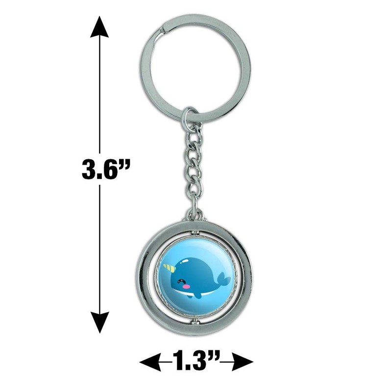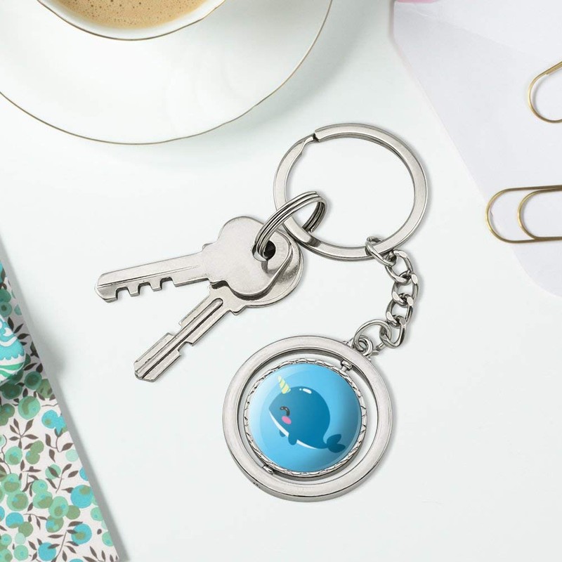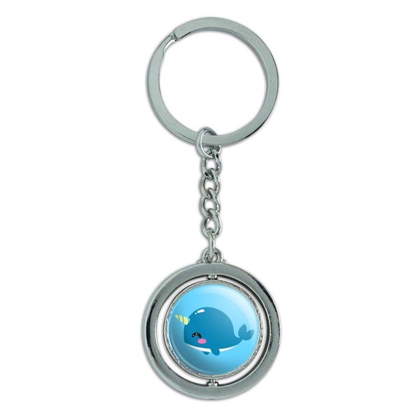 GRAPHICS & MORE Cute Kawaii Baby Narwhal Keychain Spinning Round Chrome Plated Metal