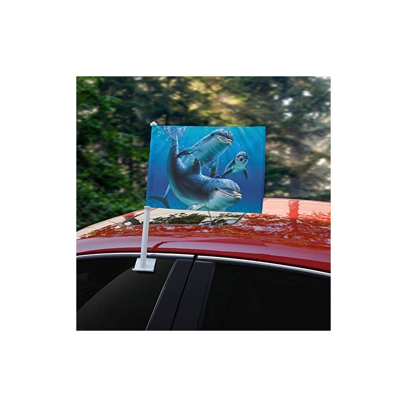 GRAPHICS & MORE Dolphin Pals Ocean Diving Car Truck Flag with Window Clip On Pole Holder