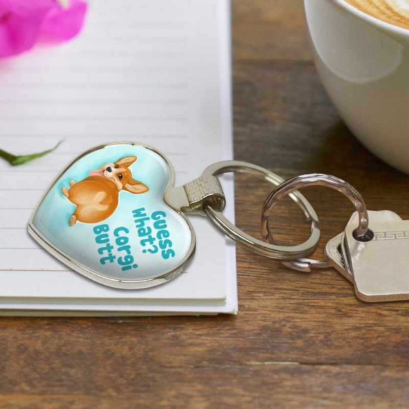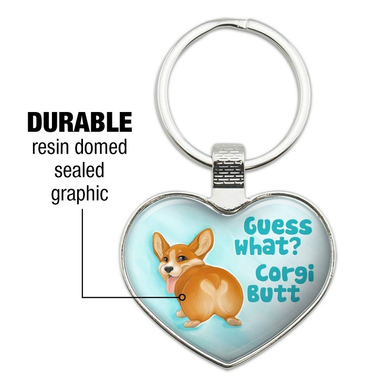GRAPHICS & MORE Guess What Corgi Butt Funny Joke Keychain Heart Love Metal Key Chain Ring