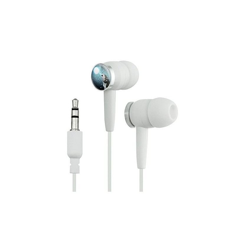 GRAPHICS & MORE Howling Wolf Moon Snow Novelty in-Ear Earbud Headphones - White