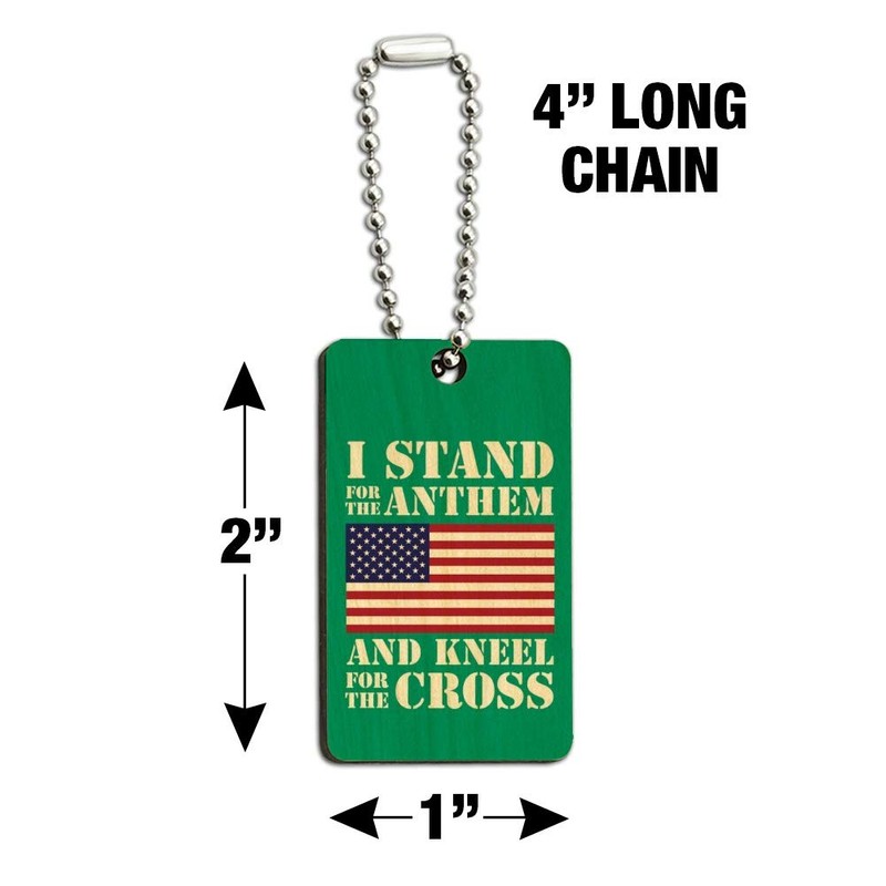 GRAPHICS & MORE I Stand For The Flag Kneel Cross USA American Flag Patriotic Wood Wooden Rectangle Keychain Key Ring