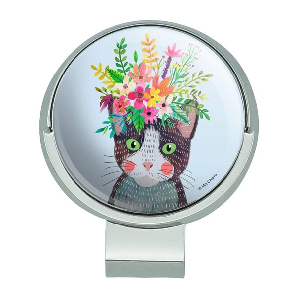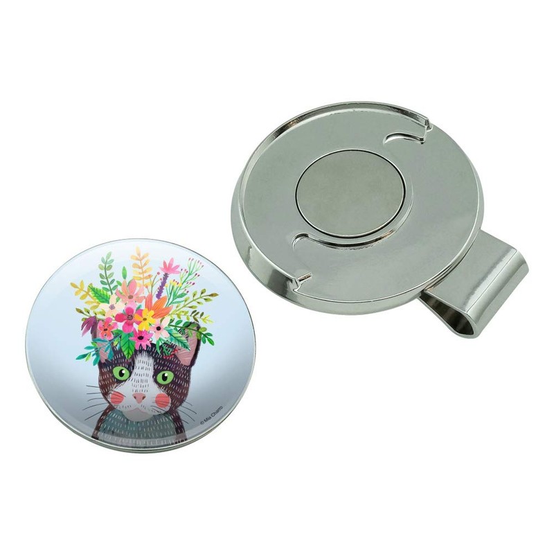 GRAPHICS & MORE Intense Cat with Flower Hair Golf Hat Clip with Magnetic Ball Marker