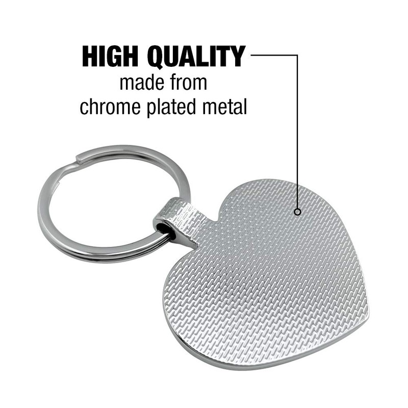 • QUALITY MATERIAL: Our durable heart-shaped keychain is crafted from chrome plated metal with a glossy resin-topped featured design shown on one side. Approximately 1.8" (4.6cm) x 1.4" (3.6cm) in size.