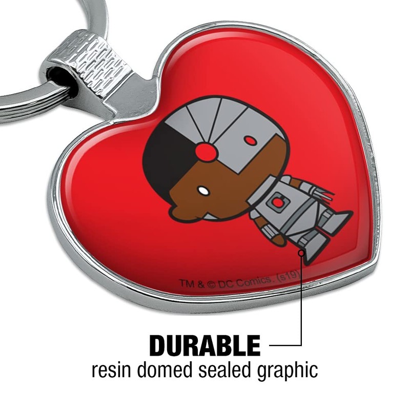 GRAPHICS & MORE Justice League Cyborg Cute Chibi Character Keychain Heart Love Metal Key Chain Ring
