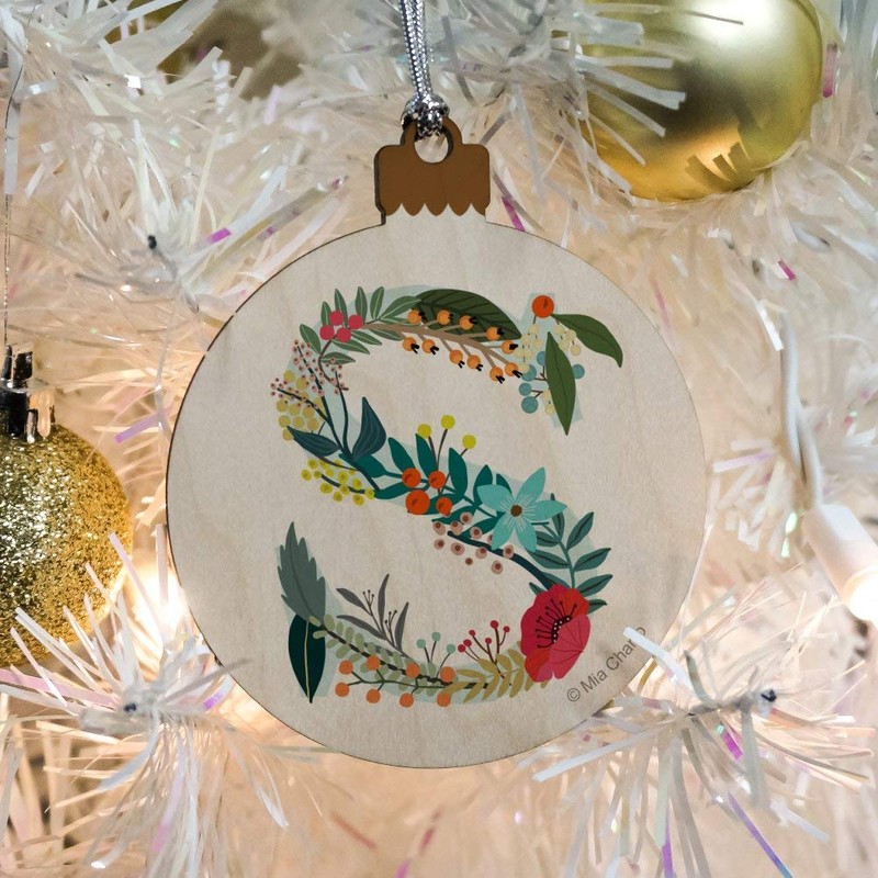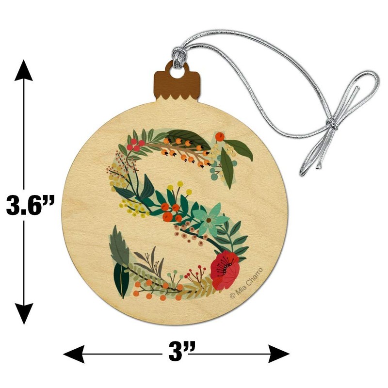 GRAPHICS & MORE Letter S Floral Monogram Initial Wood Christmas Tree Holiday Ornament