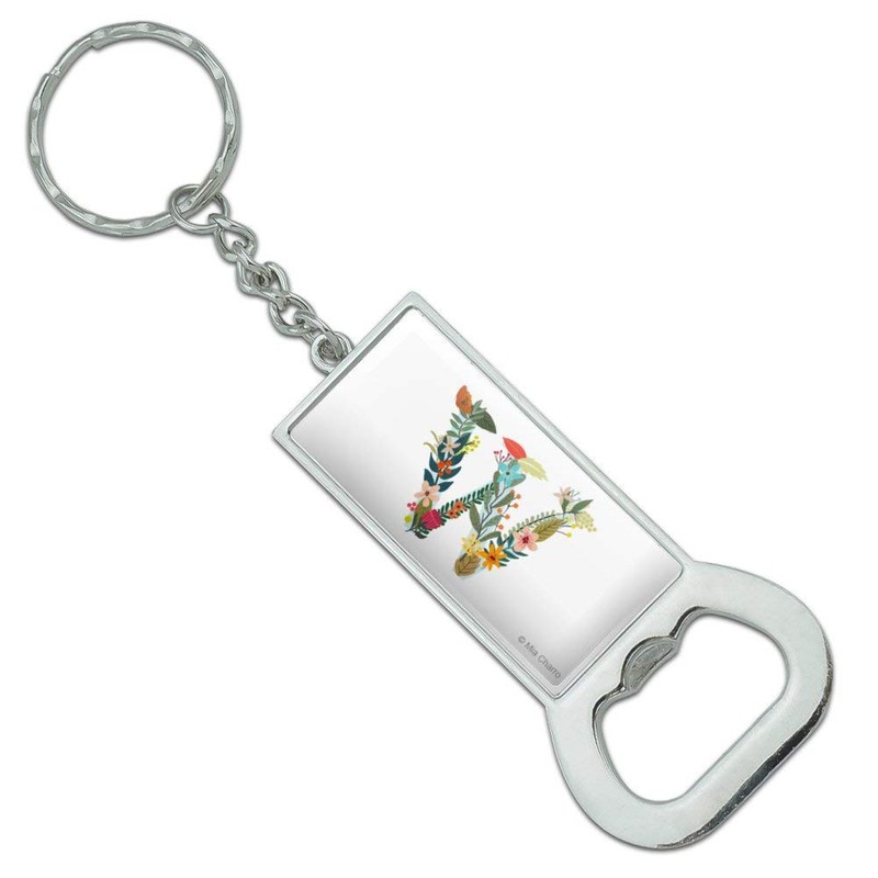 GRAPHICS & MORE Letter W Floral Monogram Initial Keychain Rectangle Chrome Plated Metal Bottle Cap Opener