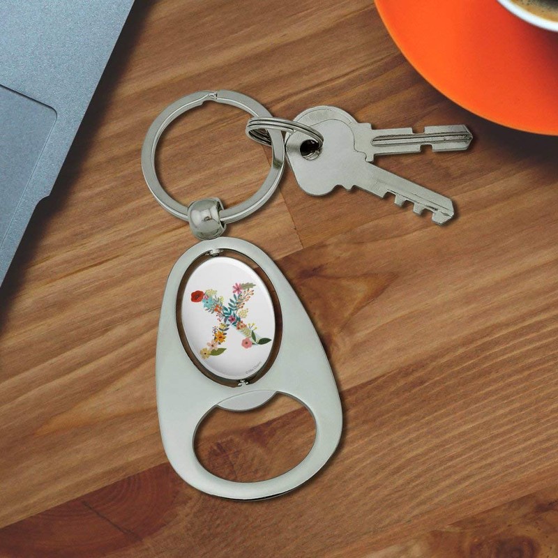 GRAPHICS & MORE Letter X Floral Monogram Initial Keychain Chrome Metal Spinning Oval Bottle Opener