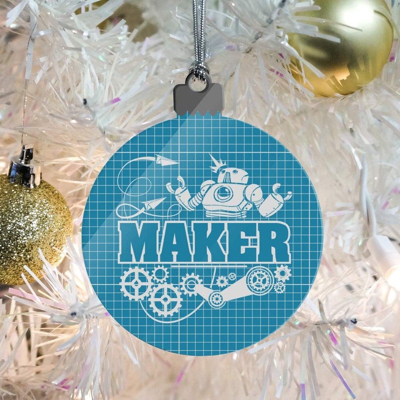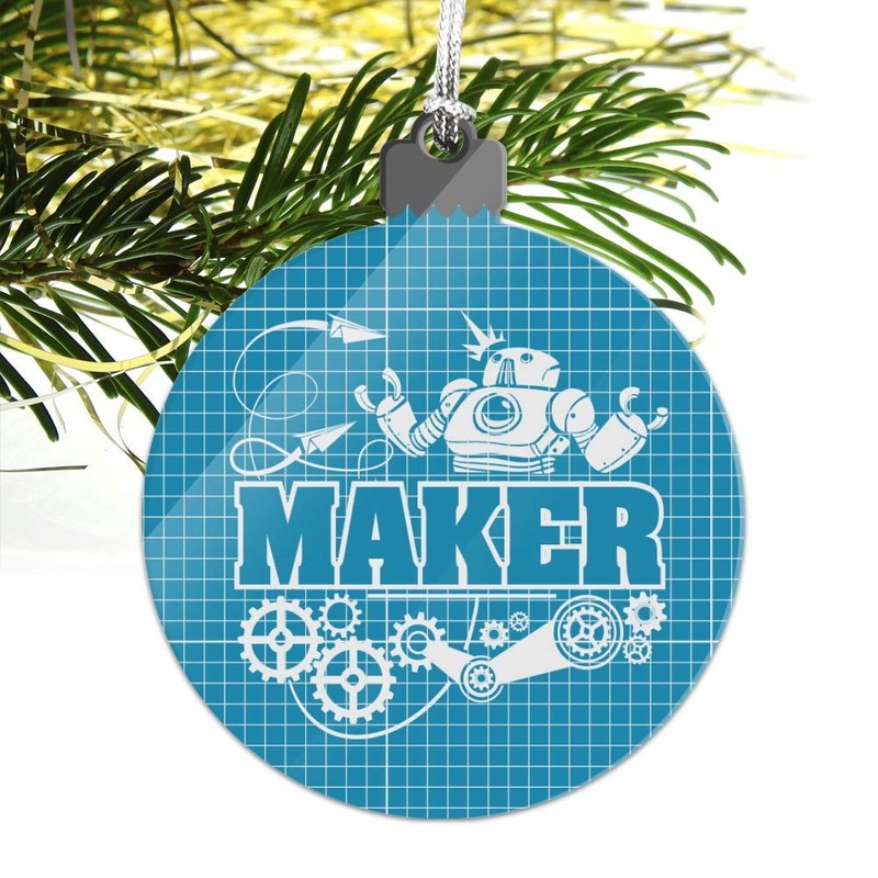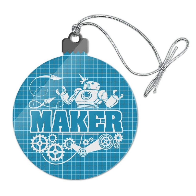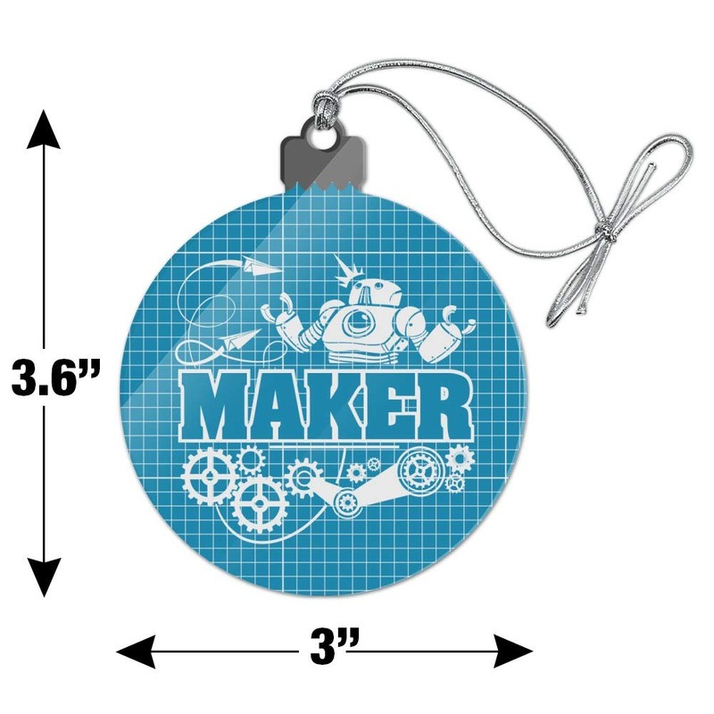 GRAPHICS & MORE Maker Blueprint Design with Robot and Gears Acrylic Christmas Tree Holiday Ornament
