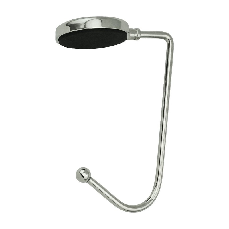 - The purse hanger hook is approximately 3.9" (9.9cm) in length, and the round design is approximately 1.5" (3.8cm) in diameter. Will work on table tops up to 2.5" (6.4cm) thick.