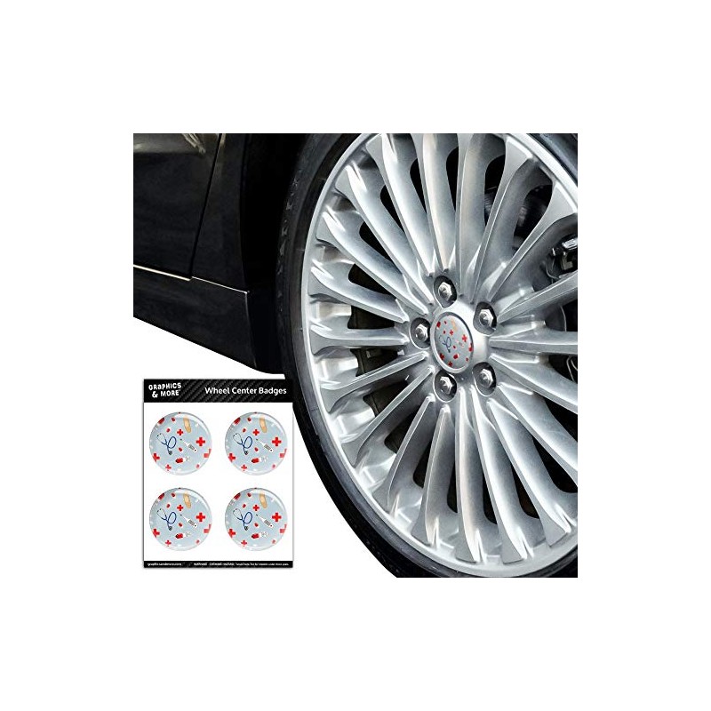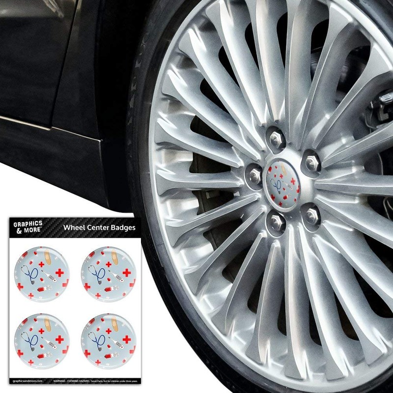 GRAPHICS & MORE Nurse Doctor Pattern Healthcare Stethoscope Thermometer Tire Wheel Center Cap Resin-Topped Badges Stickers
