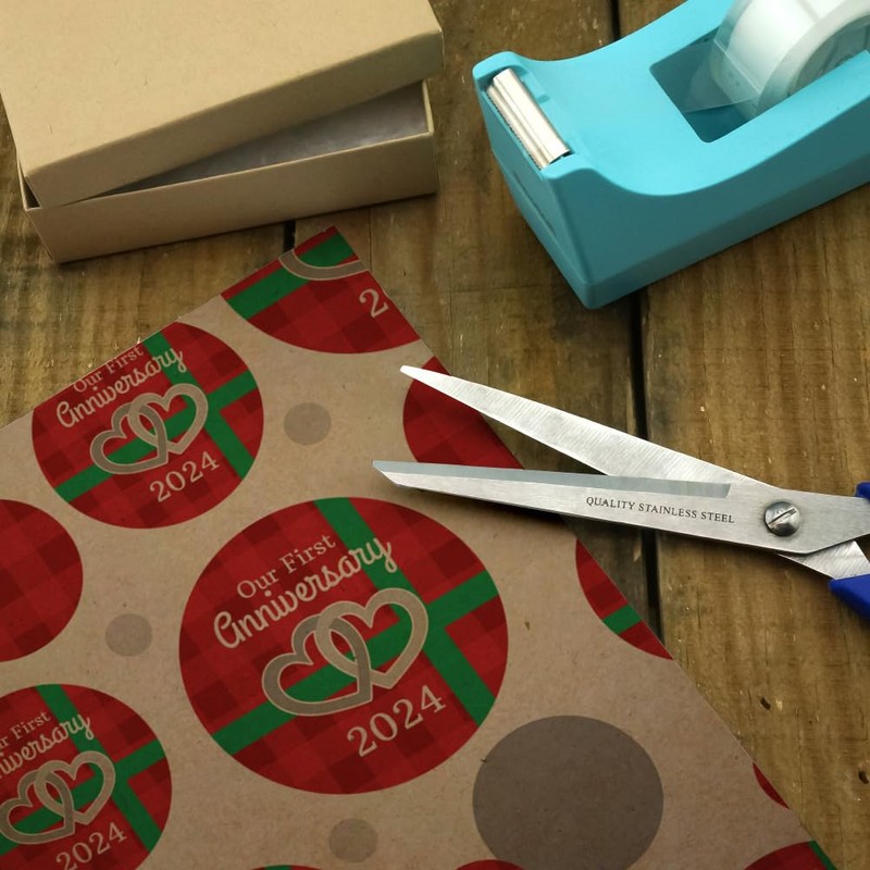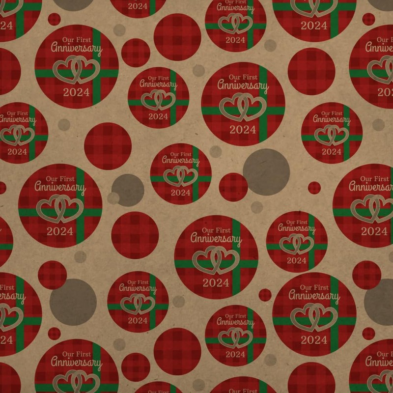 GRAPHICS & MORE Our First Anniversary Hearts Red Plaid Green Bow 2024 Premium Kraft Gift Wrap Wrapping Paper Roll