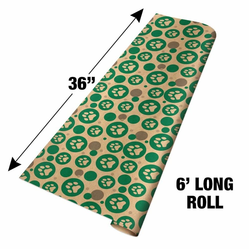 GRAPHICS & MORE Paw Print Dog Cat White on Black Premium Kraft Gift Wrap Wrap...