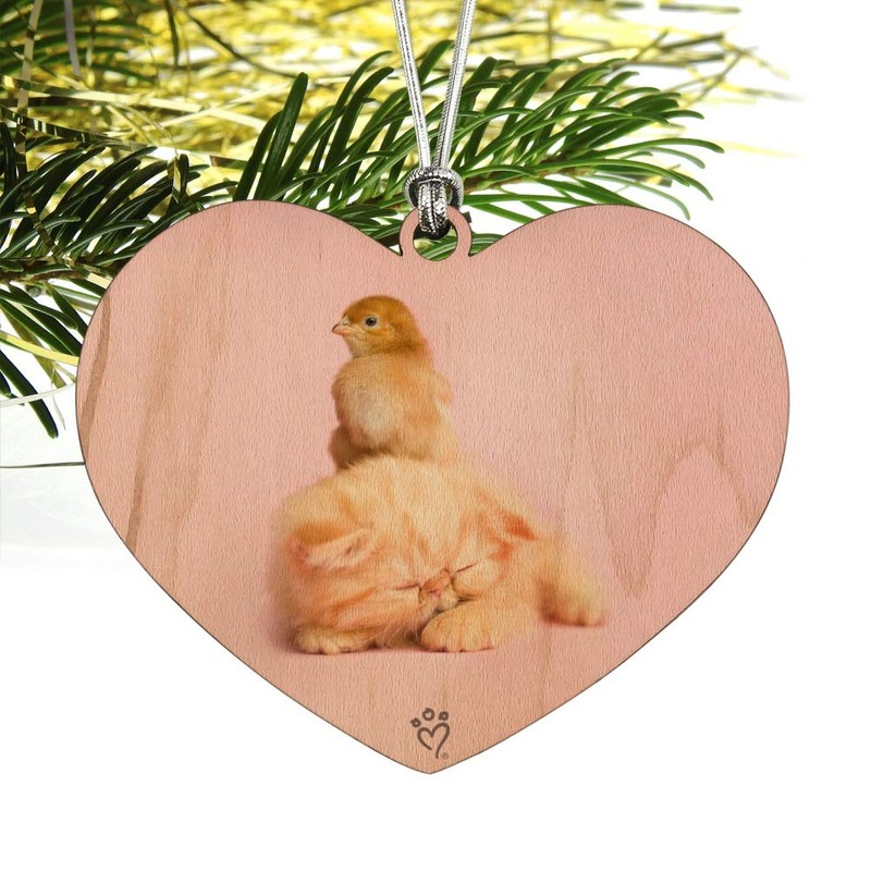 GRAPHICS & MORE Persian Kitten Cat and Chicken Chick Heart Love Wood Christmas Tree Holiday Ornament