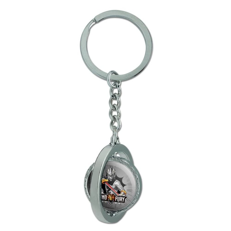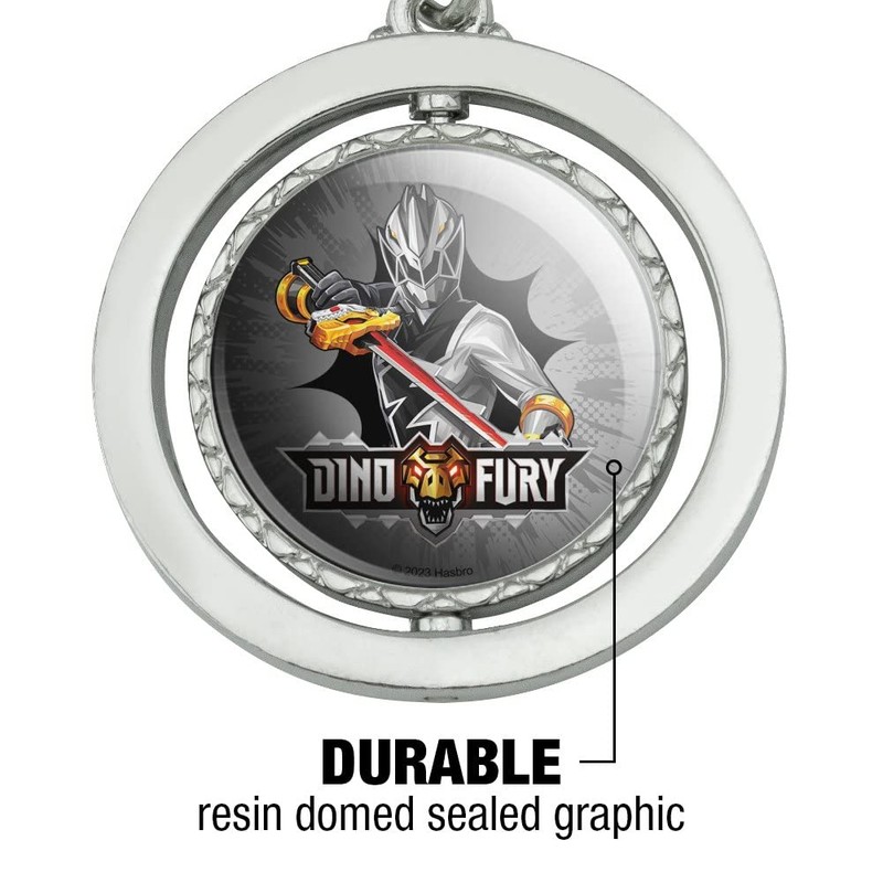 GRAPHICS & MORE Power Rangers Dino Fury Black Ranger Keychain Spinning Round Chrome Plated Metal