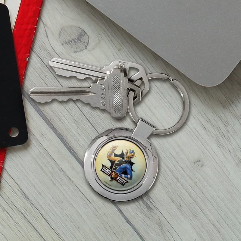 GRAPHICS & MORE Power Rangers Dino Fury Gold Ranger Keychain Classy Round Chrome Plated Metal